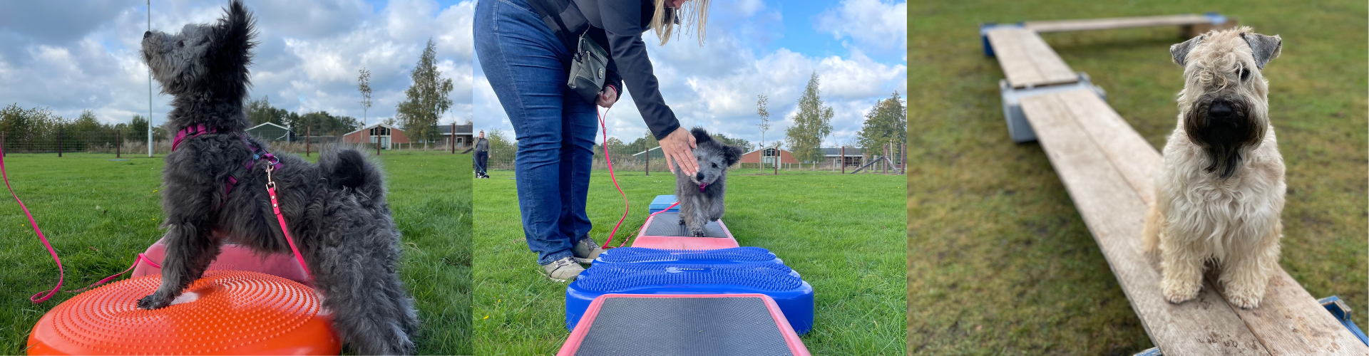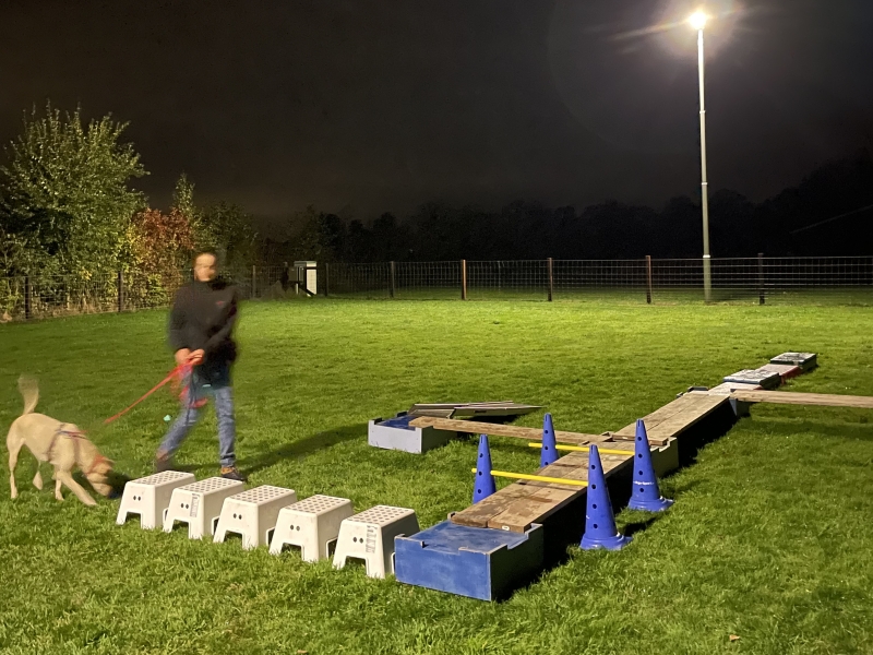 - Plankenparcours: Een parcours van planken en ander materiaal een klein stukje boven de grond. Dit is goed voor de samenwerking, focus voor de eigenaar, lichaamsbesef, core stability en zelfvertrouwen van de hond